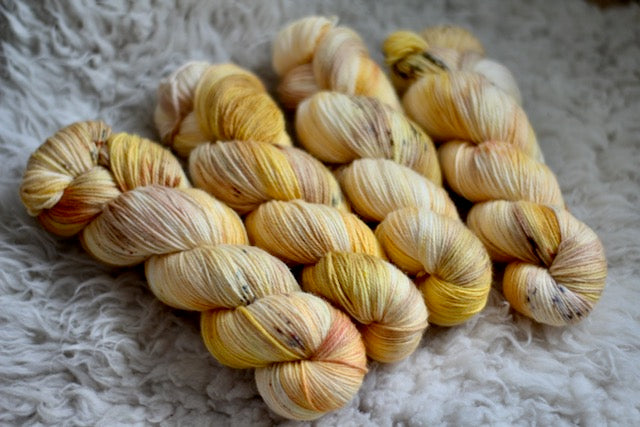 All of my yarn is hand-dyed in a smoke, perfume, and pet-free home. After dyeing, I hand-wash the skeins of yarn in Eucalan Lavender Wool Wash.