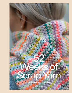 52 Weeks of Scrap Yarn: Projects for Crafters is an inspiring collection that contains 52 scrap yarn patterns ranging from small to large projects, from accessories and home decor to sweaters and cardigans. Some designs are made entirely of scraps, while others use them in smaller details as an eye-catching design element. In addition to knitting, there are also a few crochet pieces.