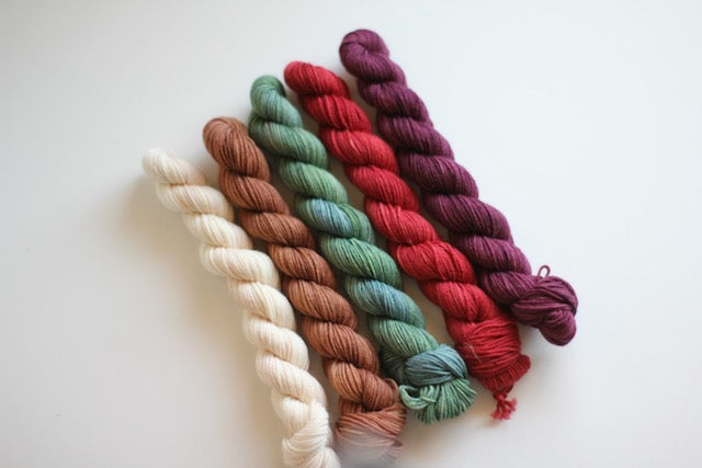 This listing is for one set of five mini skeins, ready to ship!