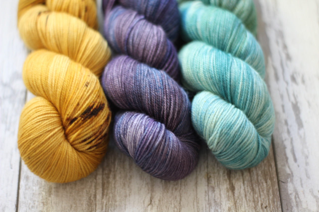 A special fade kit curated for you! This listing is for three 100g skeins, ready to ship. Happy fade-ing!
