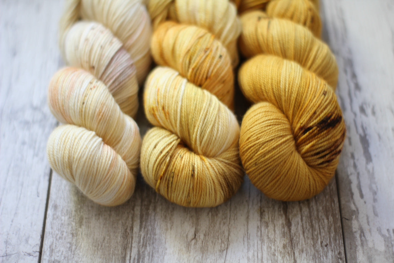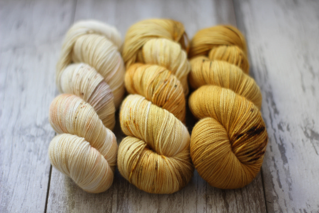 A special fade kit curated for you! This listing is for three 100g skeins, ready to ship. Happy fade-ing!
